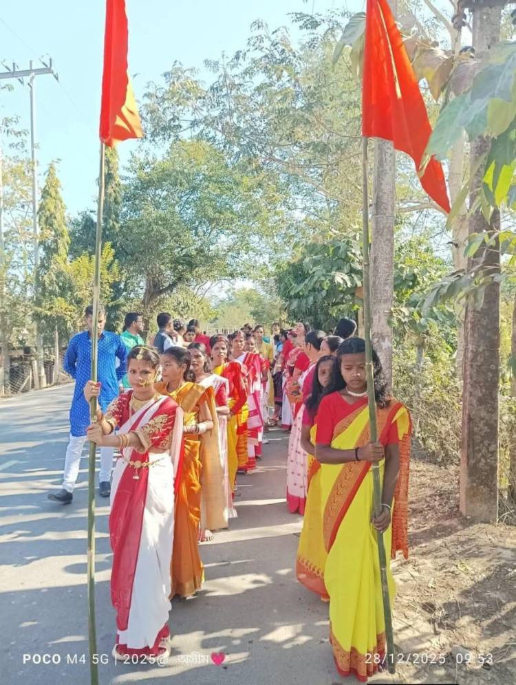 2. Bhajan Mandali: 12 hours Harinam Sankirtana organized by GHHF Assam Bhajan Mandali group in Village Tikalpar. Kirtan started at 6 pm and continued till 6 am. 12-hour Kirtan events are frequently organized by GHHF Assam, especially in Adivasi and SC (harijan, sweeper, etc.) colonies, to promote collective, non-stop chanting of the Hare Krishna mantra. These, often called Kirtan Melas or Festivals in Assam to foster community and spiritual connection. More than 800 Hindus joined this program. Arjun Adhikari Bhahan Mandali, the head of South Cachar GHHF, Assam, organized this program. Khichdi prasadam is distributed amongst all Hindus.