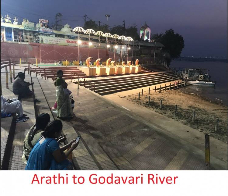 Later, the then Endowment Minister Sri P. Manikyala Rao expanded the event in 2016 to the Daily Arthi to the Godavari and Krishna Rivers. It is done similarly to the Arthi in the Ganga River in Kashi.