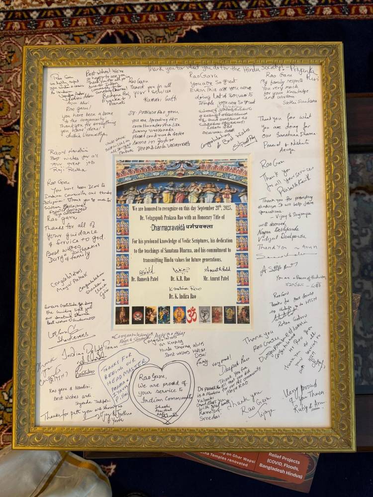 [GHHF] “Dharma Pravakta” title was awarded to Prakasarao Velagapudi by the Jackson Hindu Community on September 28.