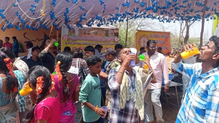 The Akkamma Devi Jatara in Kalyanadurgam town, Anantapur district, is not just a festival; it is a profound expression of faith for thousands of devotees. It is a magnificent sight to behold as villagers trek for miles under the scorching sun, carrying Panakam offerings to fulfill their vows to the Goddess. In this sea of devotion, the Global Hindu Heritage Foundation (GHHF) extended its hand of service to quench the thirst of the weary pilgrims.