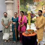1) She visited Radha Krishna Temple in Allen, where she was welcomed by Temple authorities. Veda Pandits received her with the chanting of Veda Mantras.