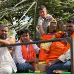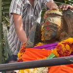 The villagers welcomed the new Goddess in a big procession where villagers were washing the streets as the vehicle carrying the Goddess was going through the main street. Some were throwing flowers, others mango leaves.