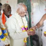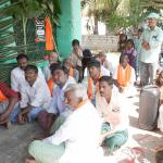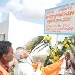 The village leaders approached GHHF though our volunteers – Gopi Chary, Arjun, Hanumanth, Nagarjun and Ravi. Velagapudi Prakash Rao immediately responded and a board saying that the propagation of other religions is prohibited in that village and a bhajan mandapam was set up in front of the Thimmappa temple by placing petals. To express their gratitude for setting up the bhajan mandapam, the villagers all got together and invited the elders of the organization to their village. The Bhajan Mandapam was inaugurated by Velagapudi Prakash Rao.